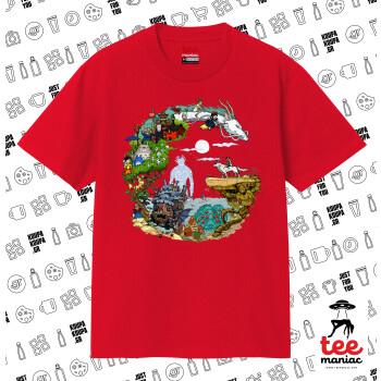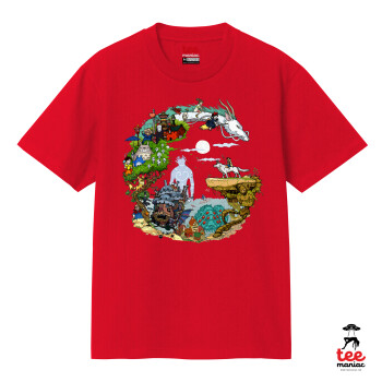Στούδιο Γκίβλι, Κλασικό T-Shirt, διπλής ραφής, χωρίς πλευρικές ραφές ΚΟΚΚΙΝΟ από 100% βαμβάκι. Vegan & OEKO-TEX πιστοποιημένο.