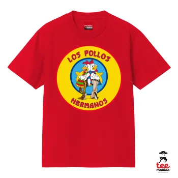 Los Pollos Hermanos, Κλασικό T-Shirt, διπλής ραφής, χωρίς πλευρικές ραφές ΚΟΚΚΙΝΟ από 100% βαμβάκι. Vegan & OEKO-TEX πιστοποιημένο.