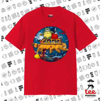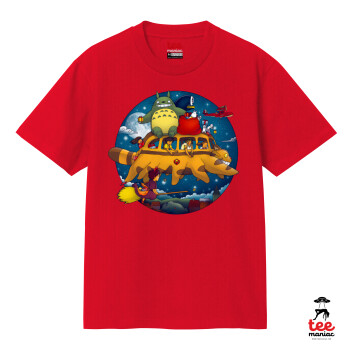Totoro Catbus, Κλασικό T-Shirt, διπλής ραφής, χωρίς πλευρικές ραφές ΚΟΚΚΙΝΟ από 100% βαμβάκι. Vegan & OEKO-TEX πιστοποιημένο.