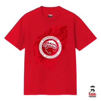Olympiacos F.C., Κλασικό T-Shirt, διπλής ραφής, χωρίς πλευρικές ραφές ΚΟΚΚΙΝΟ από 100% βαμβάκι. Vegan & OEKO-TEX πιστοποιημένο.