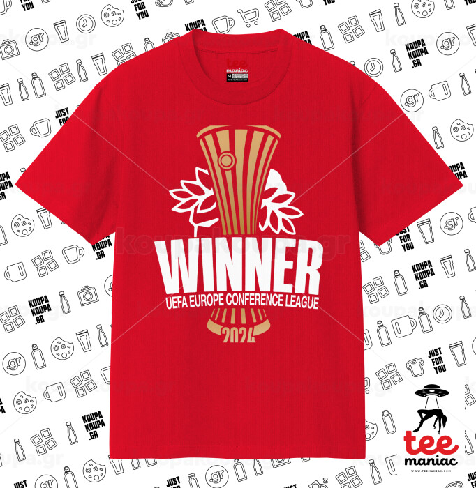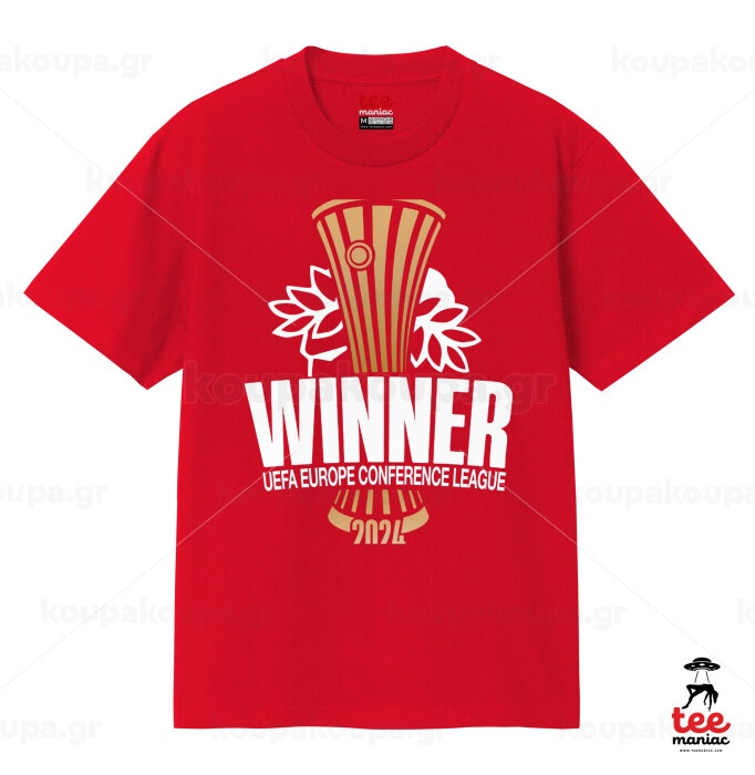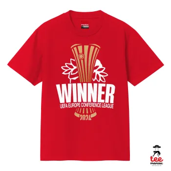 Europa Conference League WINNER, Κλασικό T-Shirt, διπλής ραφής, χωρίς πλευρικές ραφές ΚΟΚΚΙΝΟ από 100% βαμβάκι. Vegan & OEKO-TEX πιστοποιημένο.