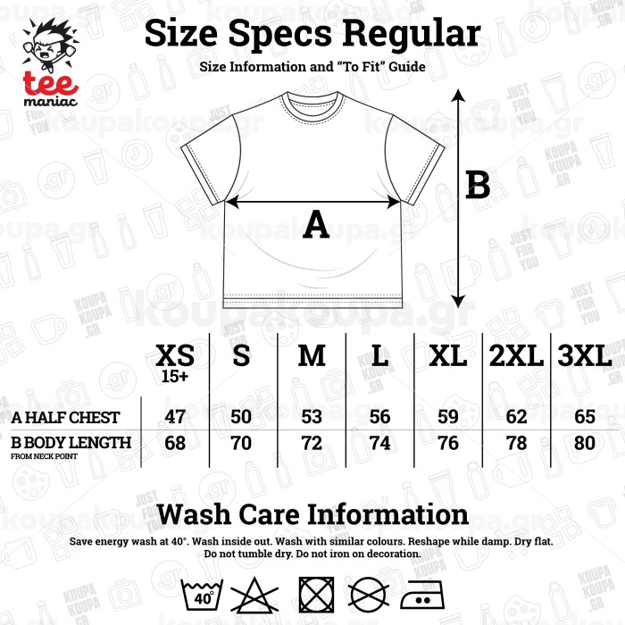 Μέγεθος A = Half Chest (cm) B = Body Length from Neck Point (cm)