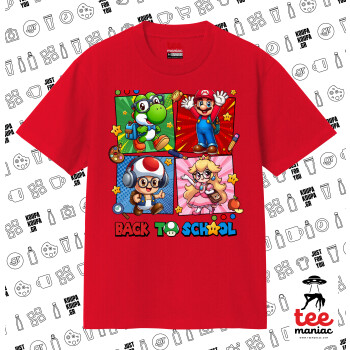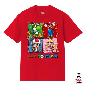 Back to the School Mario & Friends, Κλασικό T-Shirt, διπλής ραφής, χωρίς πλευρικές ραφές ΚΟΚΚΙΝΟ από 100% βαμβάκι. Vegan & OEKO-TEX πιστοποιημένο.