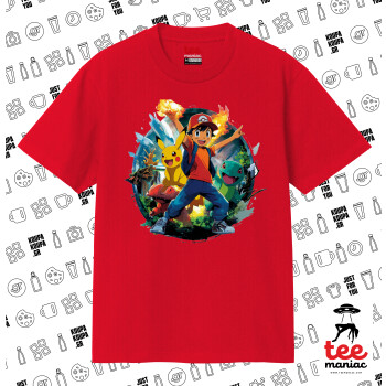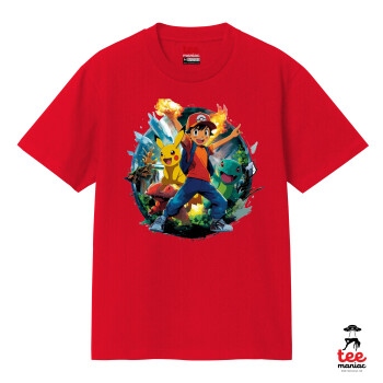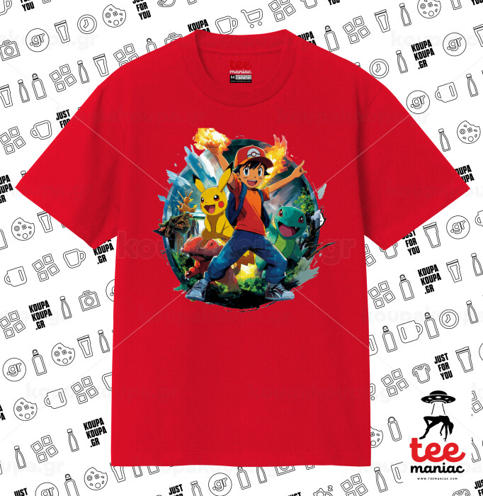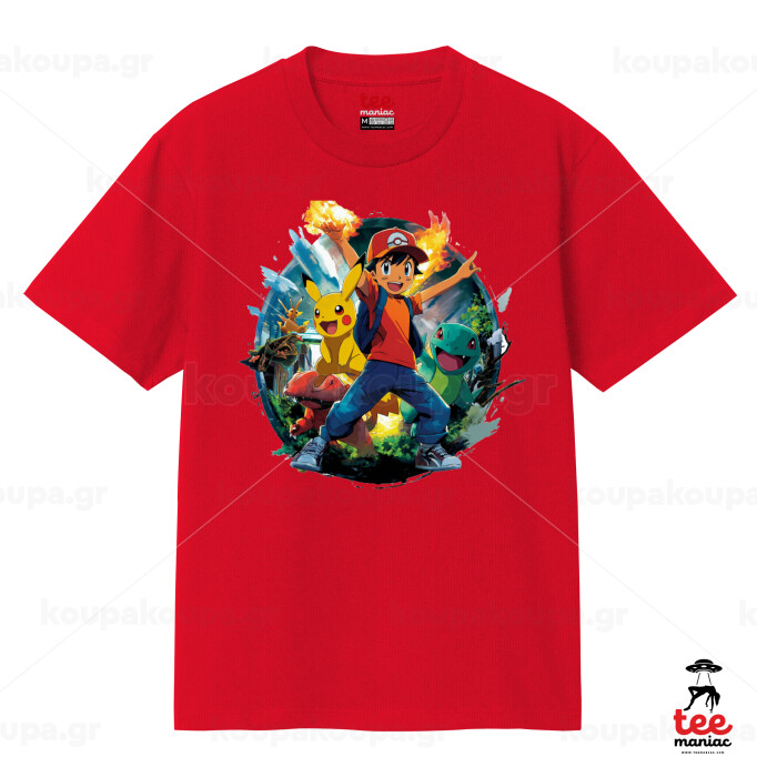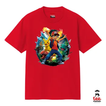 Ash Ketchum & Pikachu, Κλασικό T-Shirt, διπλής ραφής, χωρίς πλευρικές ραφές ΚΟΚΚΙΝΟ από 100% βαμβάκι. Vegan & OEKO-TEX πιστοποιημένο.