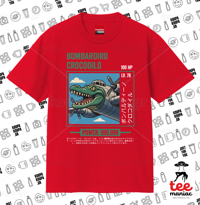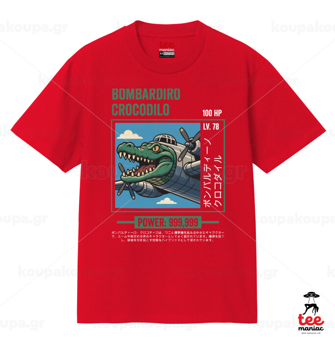 Bombardiro Crocodilo, Κλασικό T-Shirt, διπλής ραφής, χωρίς πλευρικές ραφές ΚΟΚΚΙΝΟ από 100% βαμβάκι. Vegan & OEKO-TEX πιστοποιημένο.