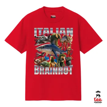 Italian Brainrot, Κλασικό T-Shirt, διπλής ραφής, χωρίς πλευρικές ραφές ΚΟΚΚΙΝΟ από 100% βαμβάκι. Vegan & OEKO-TEX πιστοποιημένο.