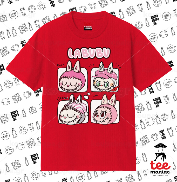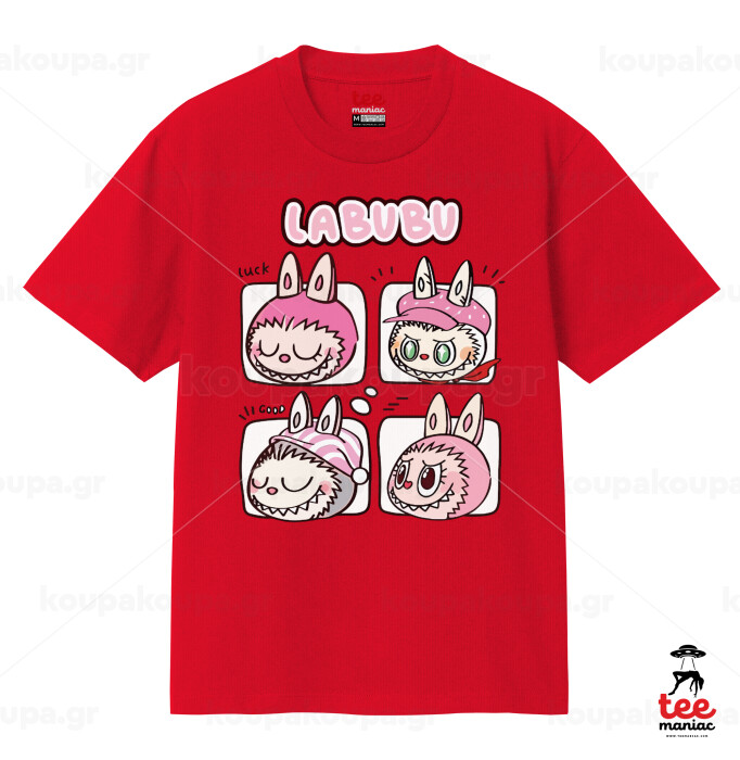 Labubu pink, Κλασικό T-Shirt, διπλής ραφής, χωρίς πλευρικές ραφές ΚΟΚΚΙΝΟ από 100% βαμβάκι. Vegan & OEKO-TEX πιστοποιημένο.