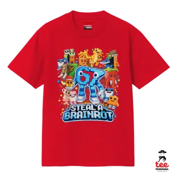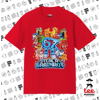 Steal a Brainrot Six Seven, Κλασικό T-Shirt, διπλής ραφής, χωρίς πλευρικές ραφές ΚΟΚΚΙΝΟ από 100% βαμβάκι. Vegan & OEKO-TEX πιστοποιημένο.