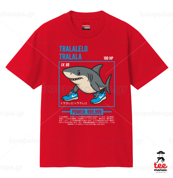 Tralalero Tralala, Κλασικό T-Shirt, διπλής ραφής, χωρίς πλευρικές ραφές ΚΟΚΚΙΝΟ από 100% βαμβάκι. Vegan & OEKO-TEX πιστοποιημένο.