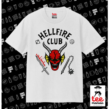 Hellfire CLub, Stranger Things, Κλασικό T-Shirt, διπλής ραφής, χωρίς πλευρικές ραφές ΛΕΥΚΟ από 100% βαμβάκι. Vegan & OEKO-TEX πιστοποιημένο.