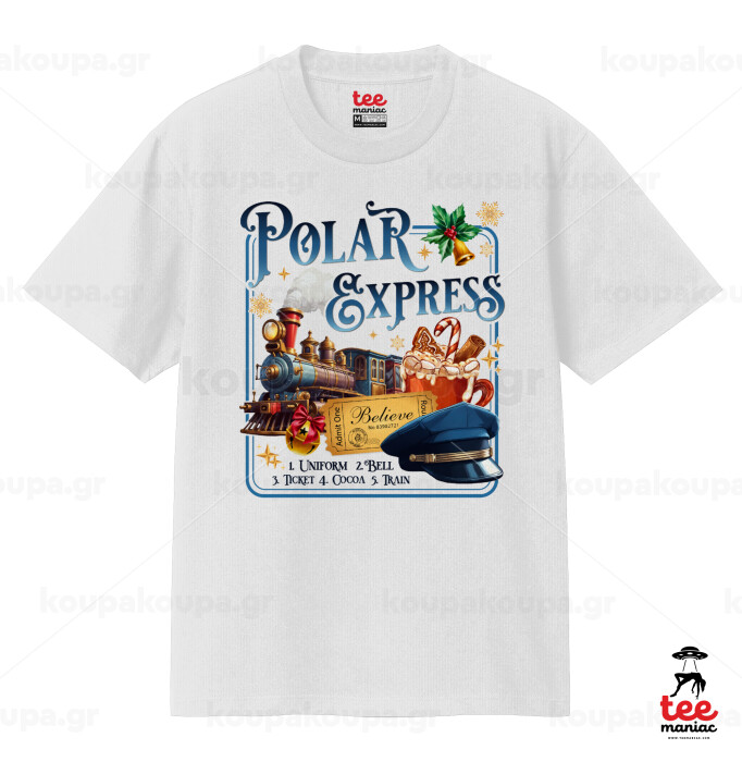 The Polar Express, Κλασικό T-Shirt, διπλής ραφής, χωρίς πλευρικές ραφές ΛΕΥΚΟ από 100% βαμβάκι. Vegan & OEKO-TEX πιστοποιημένο.