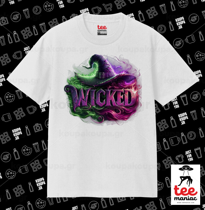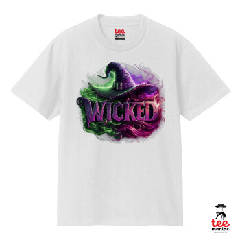 Wicked, Κλασικό T-Shirt, διπλής ραφής, χωρίς πλευρικές ραφές ΛΕΥΚΟ από 100% βαμβάκι. Vegan & OEKO-TEX πιστοποιημένο.