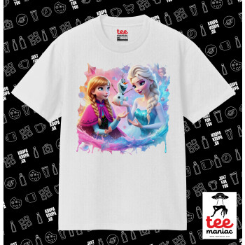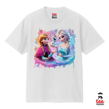 Έλσα & Άννα, Κλασικό T-Shirt, διπλής ραφής, χωρίς πλευρικές ραφές ΛΕΥΚΟ από 100% βαμβάκι. Vegan & OEKO-TEX πιστοποιημένο.