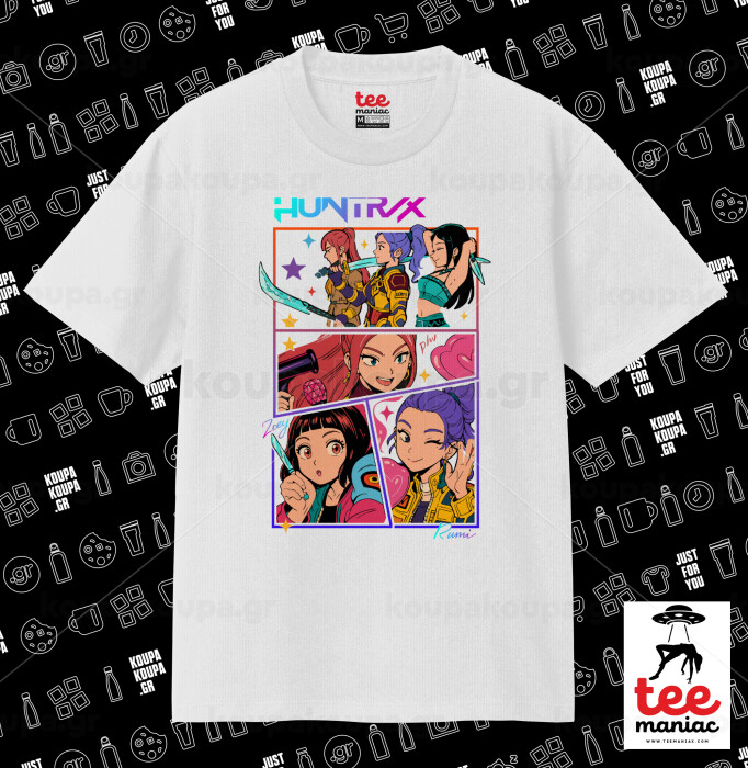 Huntrix Kpop Girls, Κλασικό T-Shirt, διπλής ραφής, χωρίς πλευρικές ραφές ΛΕΥΚΟ από 100% βαμβάκι. Vegan & OEKO-TEX πιστοποιημένο.
