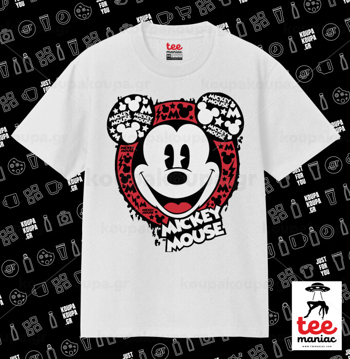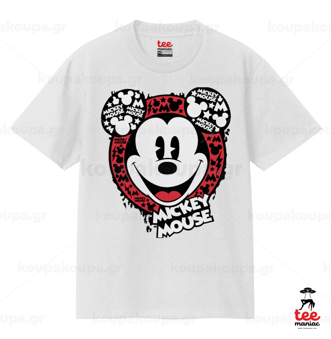 Mickey Mouse, Κλασικό T-Shirt, διπλής ραφής, χωρίς πλευρικές ραφές ΛΕΥΚΟ από 100% βαμβάκι. Vegan & OEKO-TEX πιστοποιημένο.