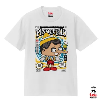 Pinocchio, Κλασικό T-Shirt, διπλής ραφής, χωρίς πλευρικές ραφές ΛΕΥΚΟ από 100% βαμβάκι. Vegan & OEKO-TEX πιστοποιημένο.