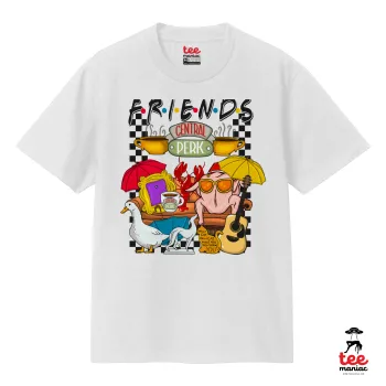 Τα φιλαράκια, Κλασικό T-Shirt, διπλής ραφής, χωρίς πλευρικές ραφές ΛΕΥΚΟ από 100% βαμβάκι. Vegan & OEKO-TEX πιστοποιημένο.