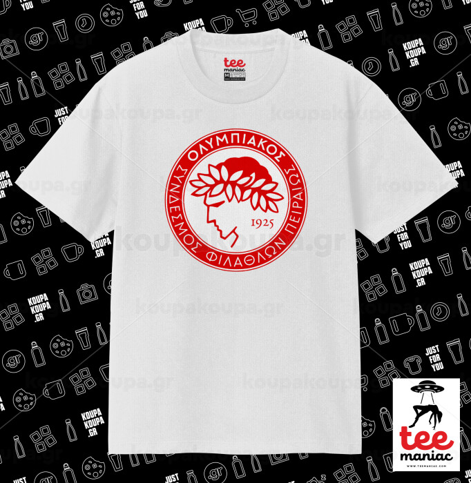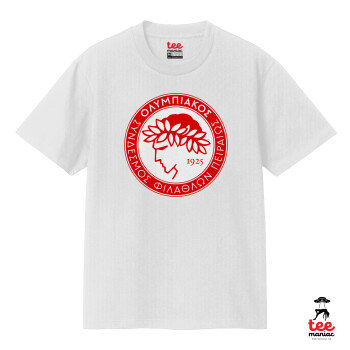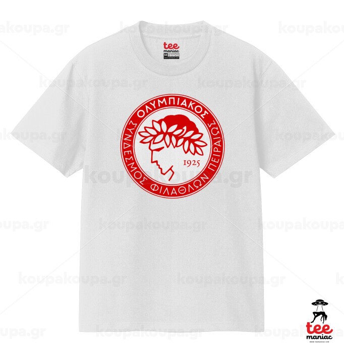 Ολυμπιακός, Κλασικό T-Shirt, διπλής ραφής, χωρίς πλευρικές ραφές ΛΕΥΚΟ από 100% βαμβάκι. Vegan & OEKO-TEX πιστοποιημένο.