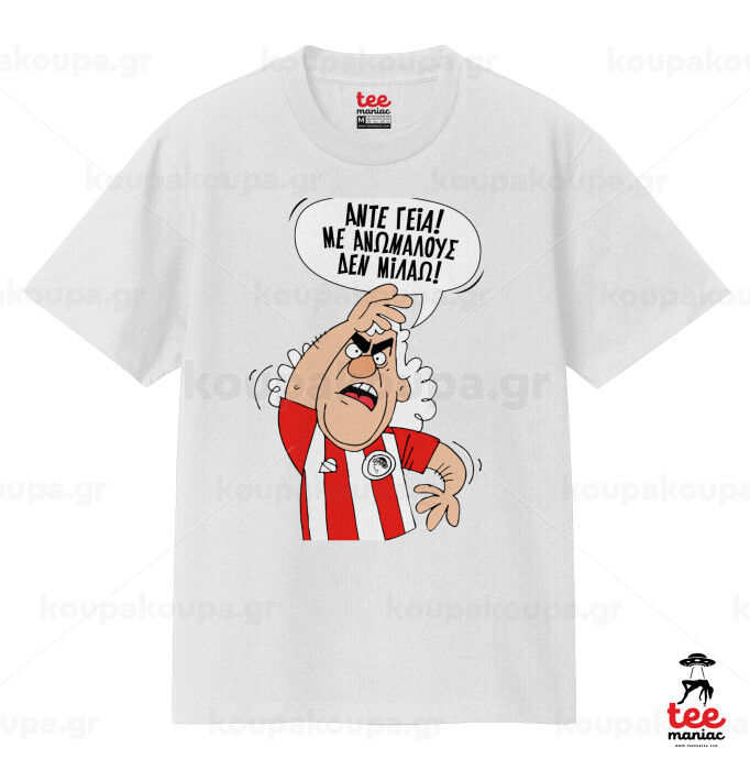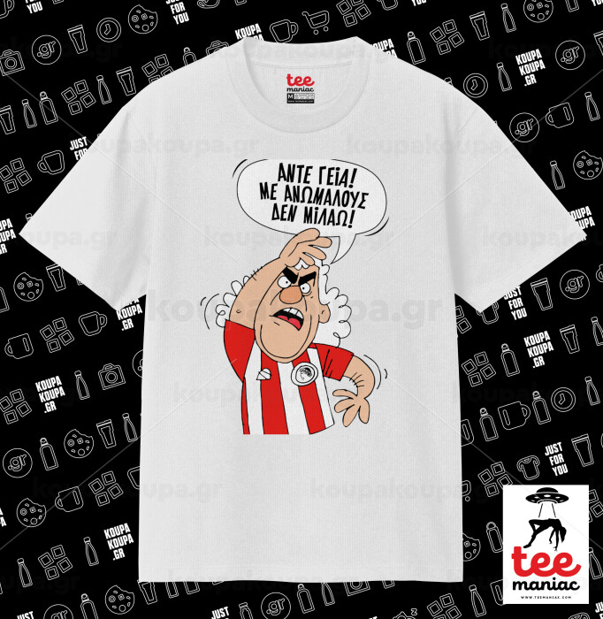 Τάκης, Άντε γεια, με ανώμαλους δεν μιλάω!, Κλασικό T-Shirt, διπλής ραφής, χωρίς πλευρικές ραφές ΛΕΥΚΟ από 100% βαμβάκι. Vegan & OEKO-TEX πιστοποιημένο.