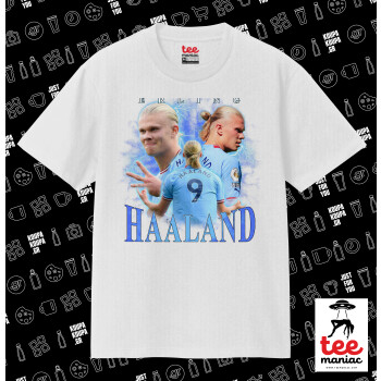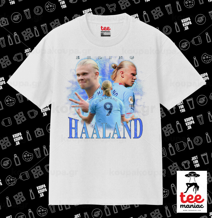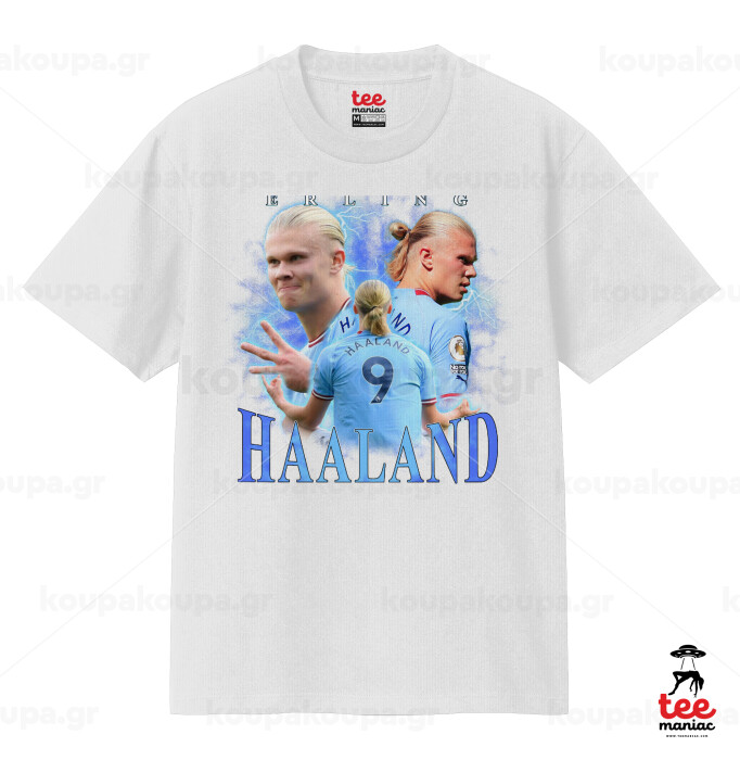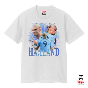 Erling Haaland, Κλασικό T-Shirt, διπλής ραφής, χωρίς πλευρικές ραφές ΛΕΥΚΟ από 100% βαμβάκι. Vegan & OEKO-TEX πιστοποιημένο.