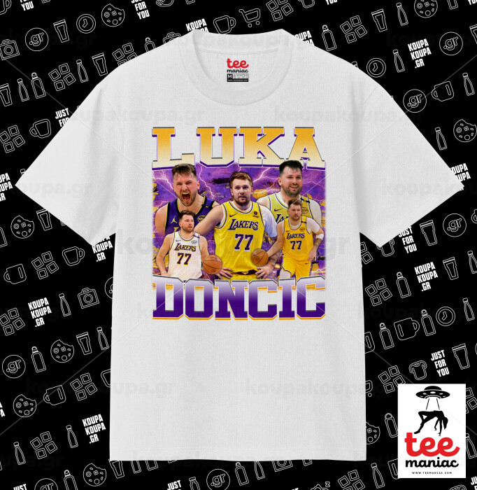 Luka Doncic Basketball , Κλασικό T-Shirt, διπλής ραφής, χωρίς πλευρικές ραφές ΛΕΥΚΟ από 100% βαμβάκι. Vegan & OEKO-TEX πιστοποιημένο.