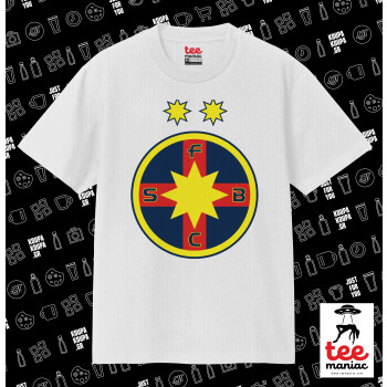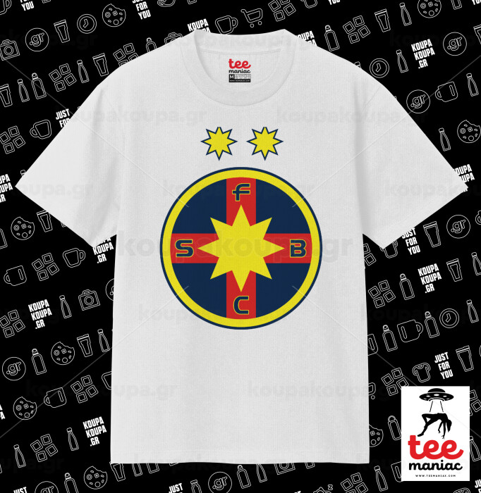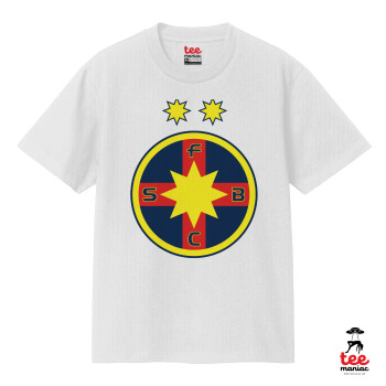 FC Steaua Bucuresti (FCSB), Κλασικό T-Shirt, διπλής ραφής, χωρίς πλευρικές ραφές ΛΕΥΚΟ από 100% βαμβάκι. Vegan & OEKO-TEX πιστοποιημένο.