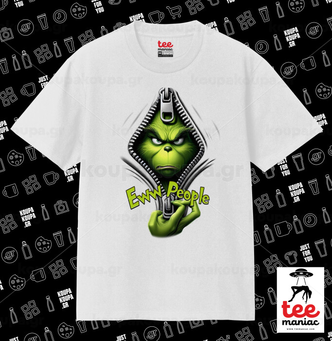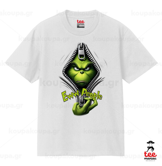 Grinch, eww people, Κλασικό T-Shirt, διπλής ραφής, χωρίς πλευρικές ραφές ΛΕΥΚΟ από 100% βαμβάκι. Vegan & OEKO-TEX πιστοποιημένο.