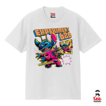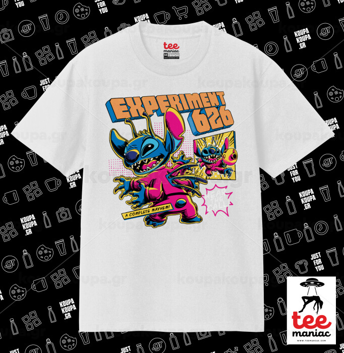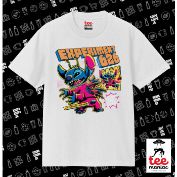 Stitch Experiment 626, Κλασικό T-Shirt, διπλής ραφής, χωρίς πλευρικές ραφές ΛΕΥΚΟ από 100% βαμβάκι. Vegan & OEKO-TEX πιστοποιημένο.