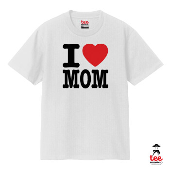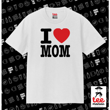 I LOVE MOM, Κλασικό T-Shirt, διπλής ραφής, χωρίς πλευρικές ραφές ΛΕΥΚΟ από 100% βαμβάκι. Vegan & OEKO-TEX πιστοποιημένο.