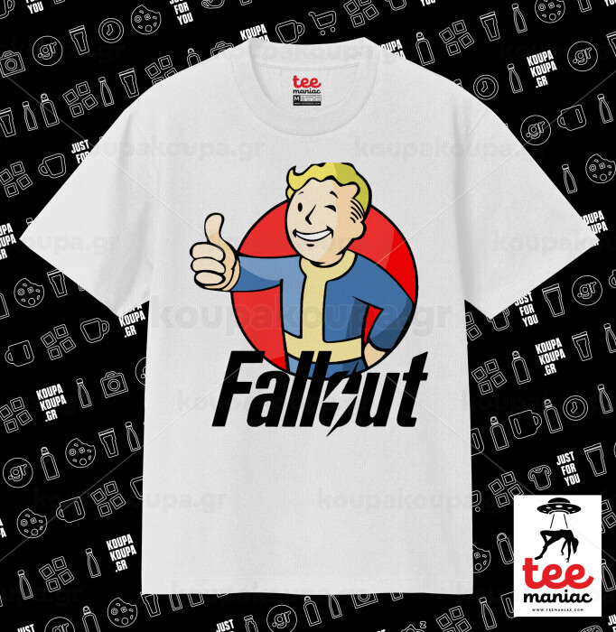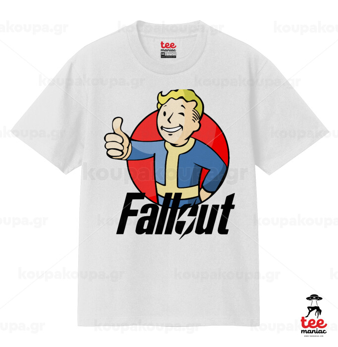 Fallout Vault Boy, Κλασικό T-Shirt, διπλής ραφής, χωρίς πλευρικές ραφές ΛΕΥΚΟ από 100% βαμβάκι. Vegan & OEKO-TEX πιστοποιημένο.