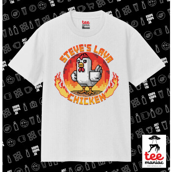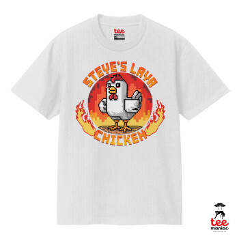 Steve's Lava Chicken, Κλασικό T-Shirt, διπλής ραφής, χωρίς πλευρικές ραφές ΛΕΥΚΟ από 100% βαμβάκι. Vegan & OEKO-TEX πιστοποιημένο.