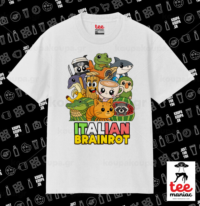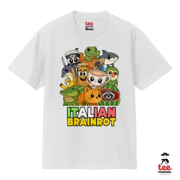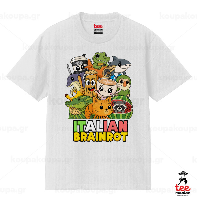 Italian Brainrot friends, Κλασικό T-Shirt, διπλής ραφής, χωρίς πλευρικές ραφές ΛΕΥΚΟ από 100% βαμβάκι. Vegan & OEKO-TEX πιστοποιημένο.