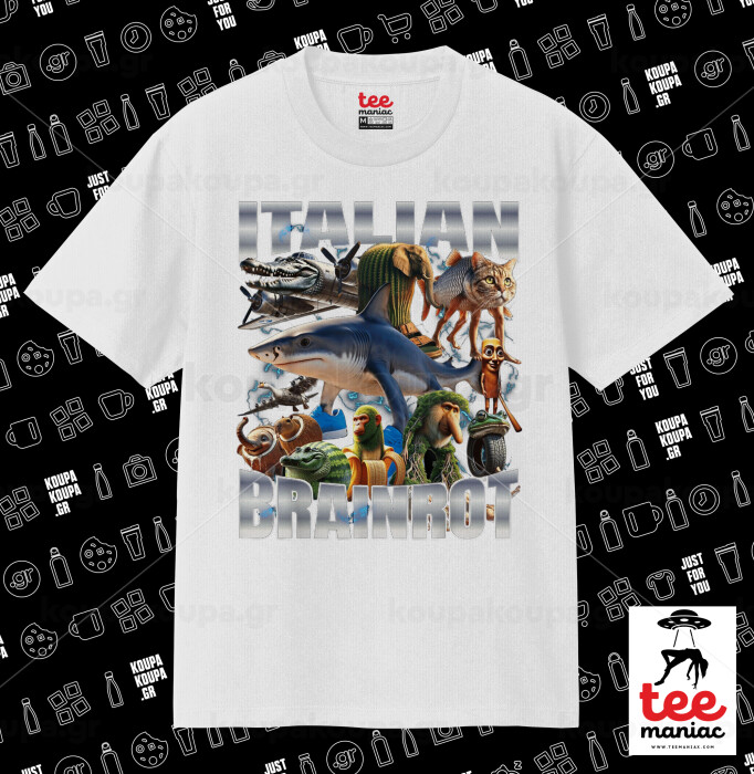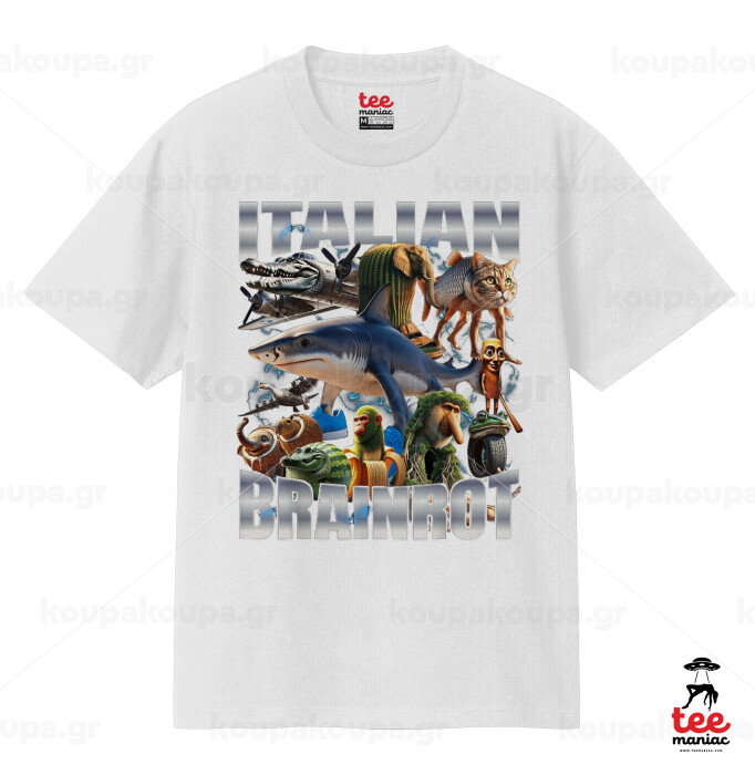 Italian Brainrot, Κλασικό T-Shirt, διπλής ραφής, χωρίς πλευρικές ραφές ΛΕΥΚΟ από 100% βαμβάκι. Vegan & OEKO-TEX πιστοποιημένο.