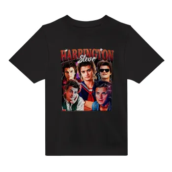 Steve Harrington, Stranger Things, Άνετο παιδικό T-Shirt ΜΑΥΡΟ από 100% βαμβάκι, για κάθε μέρα. Vegan & OEKO-TEX πιστοποιημένο.