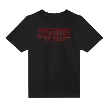 Stranger Things Logo, Άνετο παιδικό T-Shirt ΜΑΥΡΟ από 100% βαμβάκι, για κάθε μέρα. Vegan & OEKO-TEX πιστοποιημένο.