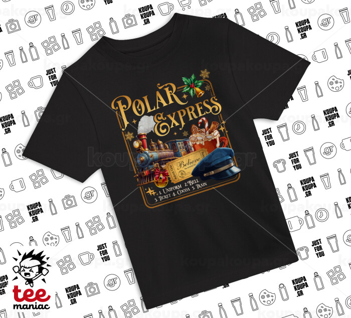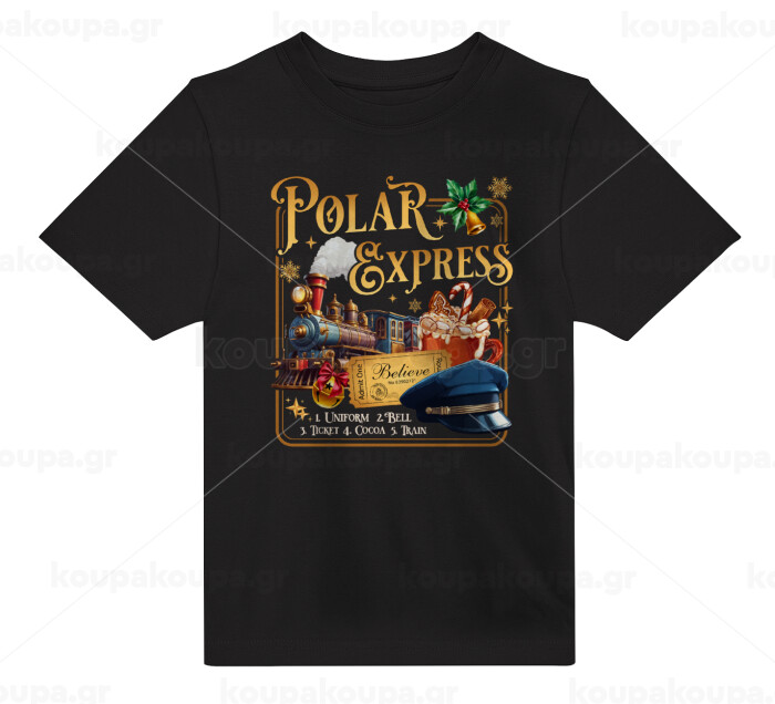 The Polar Express, Άνετο παιδικό T-Shirt ΜΑΥΡΟ από 100% βαμβάκι, για κάθε μέρα. Vegan & OEKO-TEX πιστοποιημένο.