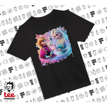 Έλσα & Άννα, Άνετο παιδικό T-Shirt ΜΑΥΡΟ από 100% βαμβάκι, για κάθε μέρα. Vegan & OEKO-TEX πιστοποιημένο.
