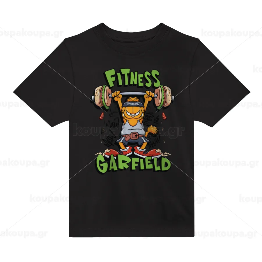 Garfield Fitness, Άνετο παιδικό T-Shirt ΜΑΥΡΟ από 100% βαμβάκι, για κάθε μέρα. Vegan & OEKO-TEX πιστοποιημένο.