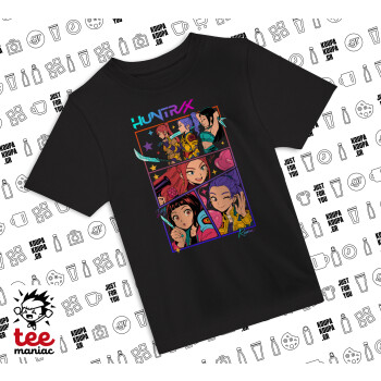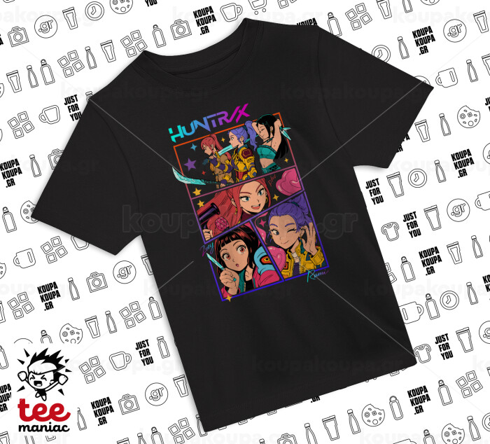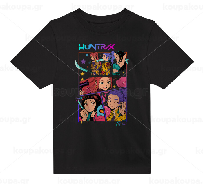 Huntrix Kpop Girls, Άνετο παιδικό T-Shirt ΜΑΥΡΟ από 100% βαμβάκι, για κάθε μέρα. Vegan & OEKO-TEX πιστοποιημένο.