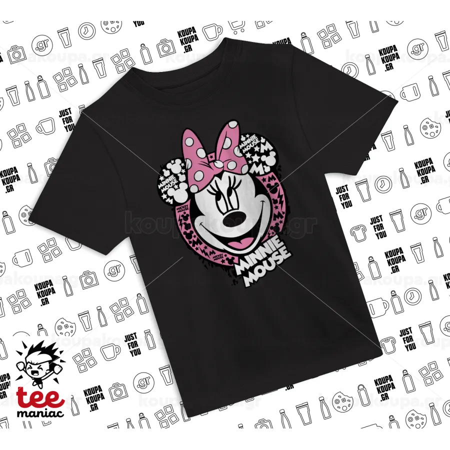 Minnie mouse, Άνετο παιδικό T-Shirt ΜΑΥΡΟ από 100% βαμβάκι, για κάθε μέρα. Vegan & OEKO-TEX πιστοποιημένο.