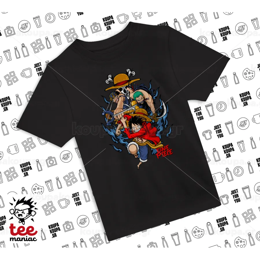 One Piece, Άνετο παιδικό T-Shirt ΜΑΥΡΟ από 100% βαμβάκι, για κάθε μέρα. Vegan & OEKO-TEX πιστοποιημένο.