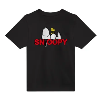 Snoopy sleep, Άνετο παιδικό T-Shirt ΜΑΥΡΟ από 100% βαμβάκι, για κάθε μέρα. Vegan & OEKO-TEX πιστοποιημένο.