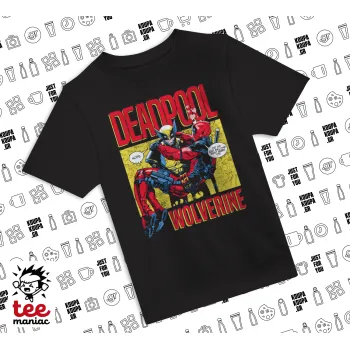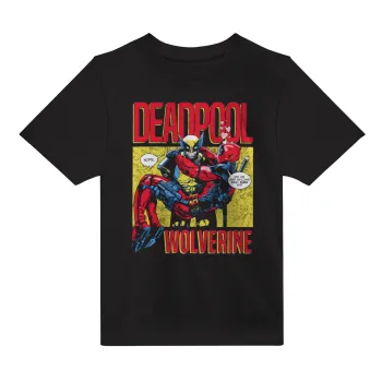 Superhero Deadpool Wolverine, Άνετο παιδικό T-Shirt ΜΑΥΡΟ από 100% βαμβάκι, για κάθε μέρα. Vegan & OEKO-TEX πιστοποιημένο.