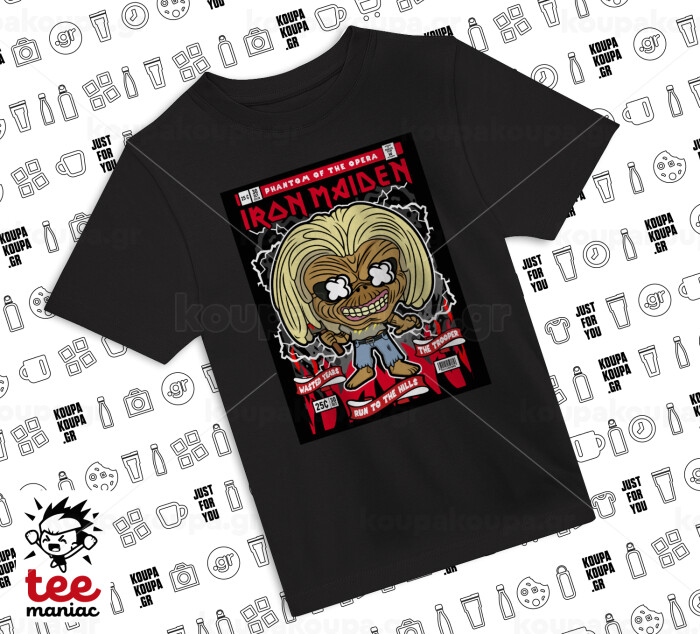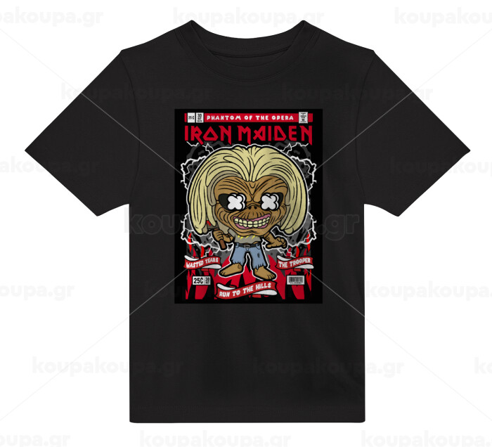 Iron maiden (eddie), Άνετο παιδικό T-Shirt ΜΑΥΡΟ από 100% βαμβάκι, για κάθε μέρα. Vegan & OEKO-TEX πιστοποιημένο.