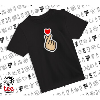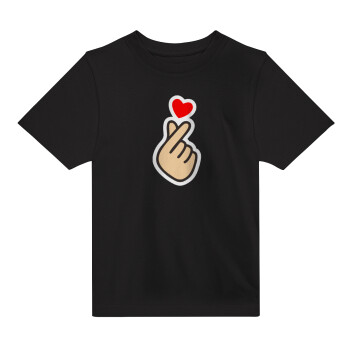 Korean Finger Heart, Άνετο παιδικό T-Shirt ΜΑΥΡΟ από 100% βαμβάκι, για κάθε μέρα. Vegan & OEKO-TEX πιστοποιημένο.