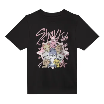 Stray Kids Pink, Άνετο παιδικό T-Shirt ΜΑΥΡΟ από 100% βαμβάκι, για κάθε μέρα. Vegan & OEKO-TEX πιστοποιημένο.