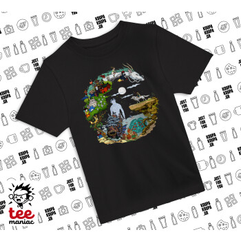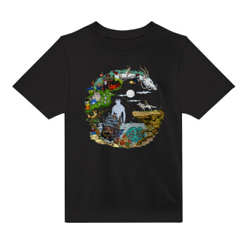 Στούδιο Γκίβλι, Άνετο παιδικό T-Shirt ΜΑΥΡΟ από 100% βαμβάκι, για κάθε μέρα. Vegan & OEKO-TEX πιστοποιημένο.