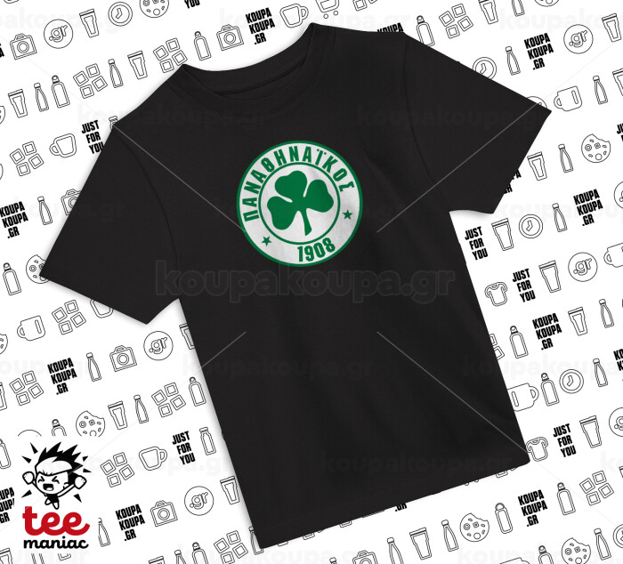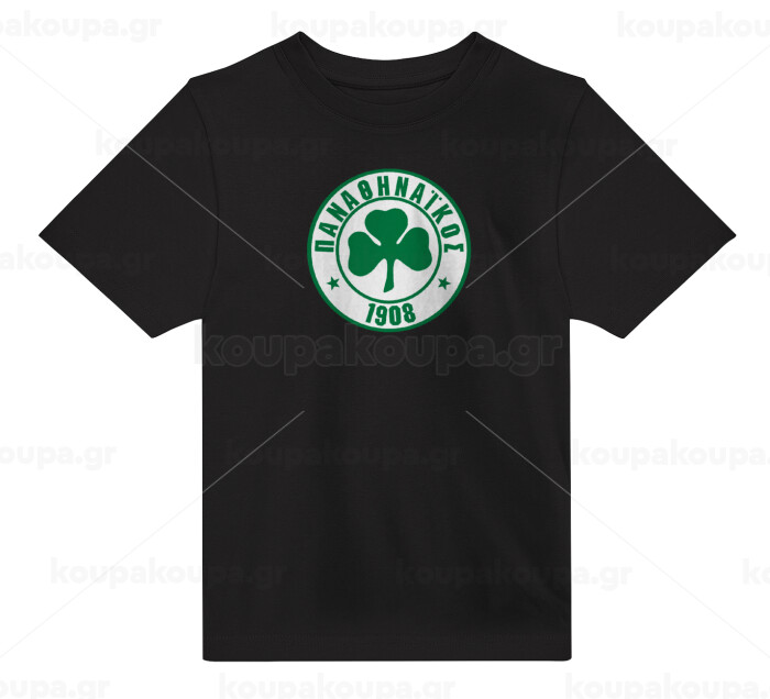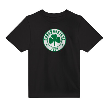 ΠΑΟ Παναθηναϊκός, Άνετο παιδικό T-Shirt ΜΑΥΡΟ από 100% βαμβάκι, για κάθε μέρα. Vegan & OEKO-TEX πιστοποιημένο.