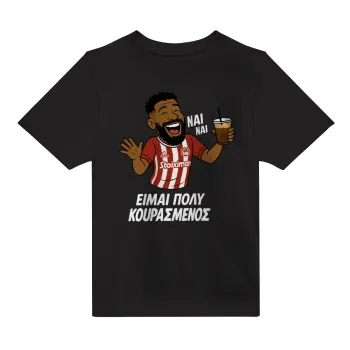 Ροντινέι, "ΠΟΛΥ ΚΟΥΡΑΣΜΕΝΟΣ", Άνετο παιδικό T-Shirt ΜΑΥΡΟ από 100% βαμβάκι, για κάθε μέρα. Vegan & OEKO-TEX πιστοποιημένο.