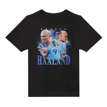Erling Haaland, Άνετο παιδικό T-Shirt ΜΑΥΡΟ από 100% βαμβάκι, για κάθε μέρα. Vegan & OEKO-TEX πιστοποιημένο.